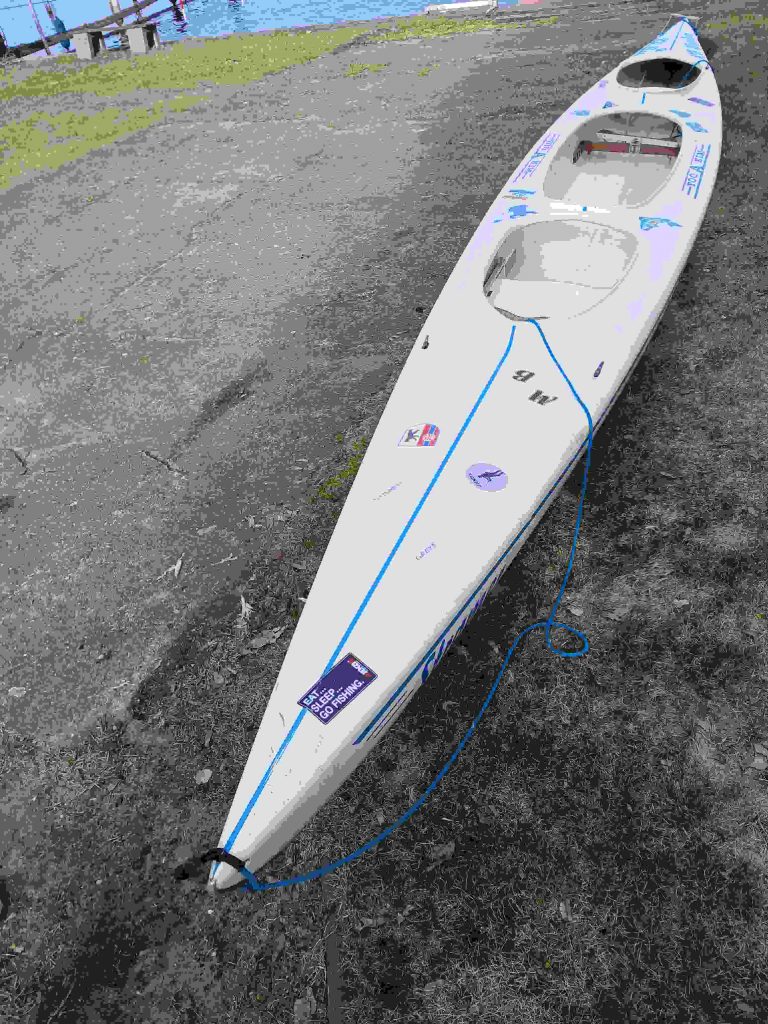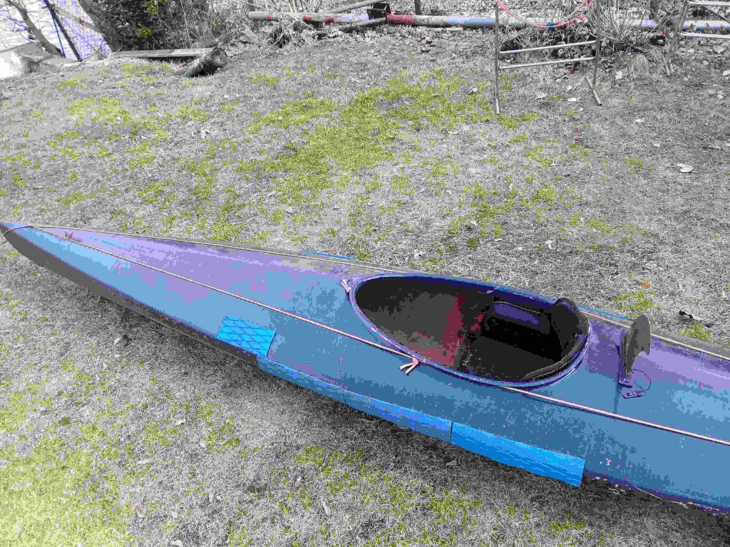 Verkaufe Touring KI „Roock-Schmidt„, ein schönes, recht schnelles, sehr leichtes und trotzdem sicheres Touring-Kajak, eins der letzten eigenhändig von den Weltmeistern Hermann Roock und Norbert Schmidt gebauten Boote.